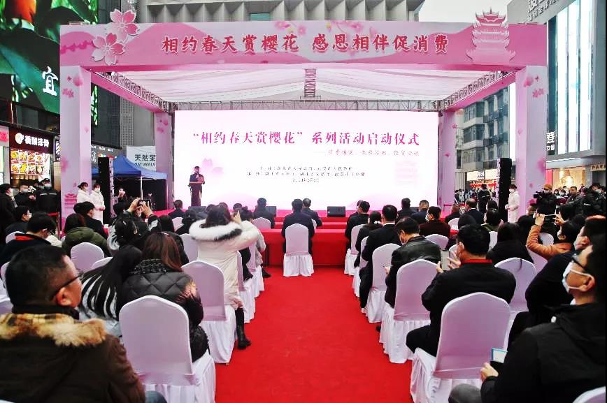 阳春三月,春暖花开,祖国山河,春和景明。3月8日下午,省商务厅组织举办的2021“相约春天赏樱花”系列消费促进活动启动仪式在武汉市江汉路步行街举行,省人民政府副省长赵海山宣布2021“相约春天赏樱花”系列消费促进活动正式启动。